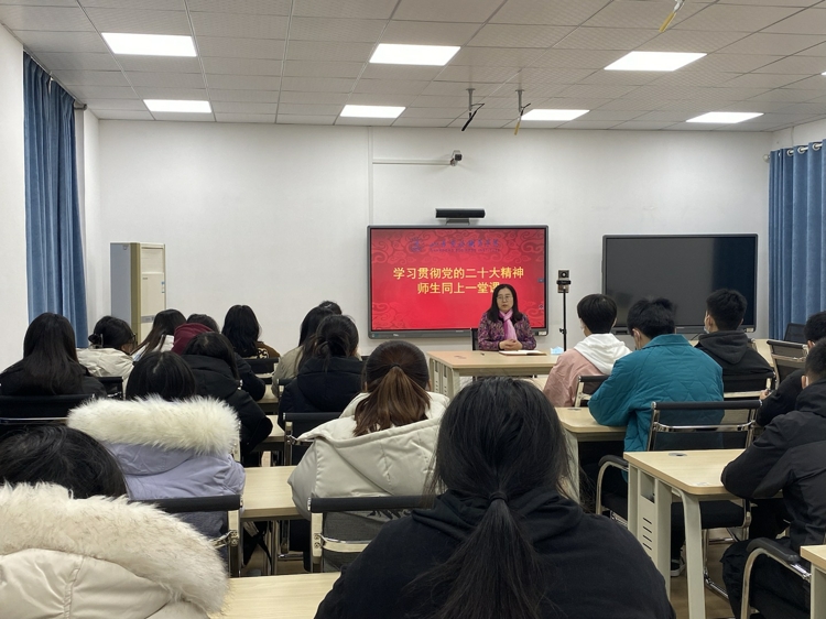 为深入学习宣传贯彻党的二十大精神,充分发挥基层党组织的战斗堡垒和党员的先锋模范作用,引领师生党员把思想统一到党的二十大精神上来,把特殊时期的疫情防控教育转化为促进学生精神成长的动力,信息工程学院党总支于11月29日下午在二号教学楼、实训中心开展了以“学习党的二十大精神 筑牢安全防线”为题的“师生同上一堂课”活动。学院党总支书记肖永霞主讲,全体辅导员、学业导师及1500余名在校学生通过网络直播在线参会。