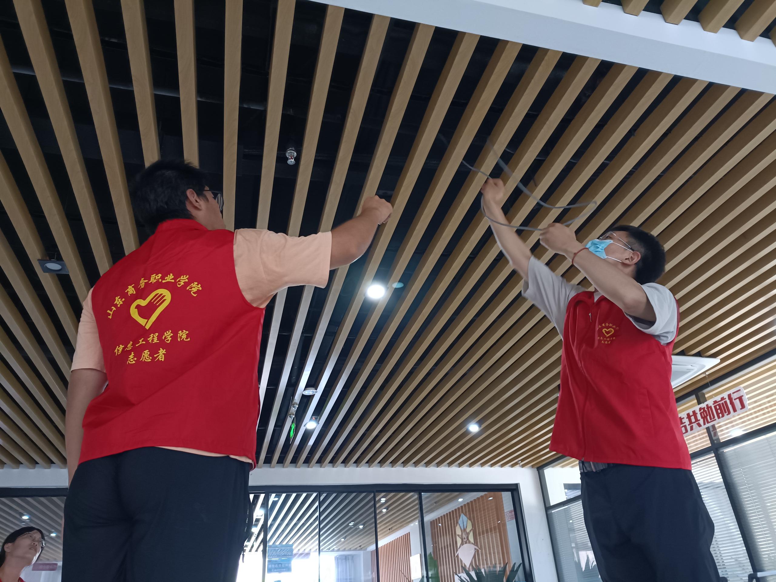 报到过程中同学们帮助社区搬运防疫物资,并了解到社区核酸检测扫码所用设备联网困难,我院师生利用专业技术优势,为社区服务中心铺设网线连接WiFi,助力社区疫情防控工作的开展,帮助社区解决实际问题。海兴社区书记王艺颖还向同学们介绍了社区优秀的志愿活动模范和党员先锋模范,在这个特殊的日子里给同学们上了一堂生动的党课。