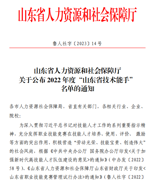 本站讯 近日,山东省人力资源和社会保障厅公布了2022年度“山东省技术能手”名单,我校财务处孙琳、信息工程学院王海霞两名教师榜上有名。