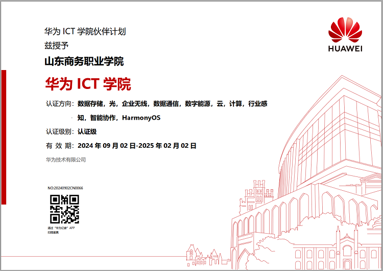 多年来,我校与华为技术有限公司及其伙伴公司一直保持良好的合作关系,今年学校顺利通过申请,成为了认证级华为ICT学院,依托华为ICT学院为学生开设了很多线上的优秀课程,并且成功立项了华为技术有限公司和中国软件行业协会的“国产软件进课堂”教学改革项目,致力于推进优秀国产软件应用教学,将最新的国产软件技术带给同学们。另外,学校今年有19名教师顺利通过华为HCIP-AI(人工智能专家)认证考试,4名教师通过考试成为HCAI(华为ICT学院认证教师)。