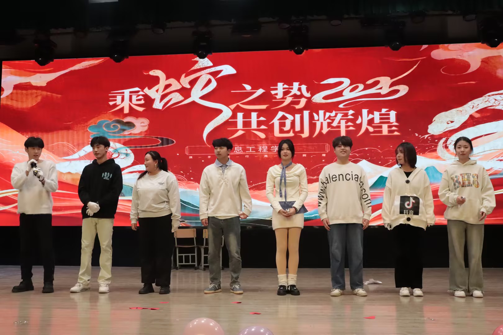 整场晚会历时两个多小时,节目内容丰富,形式多样,充分展示了同学们的多才多艺和对未来的美好憧憬。新的一年,信息工程学院的师生们将携手共进,迎接新的挑战,为实现更加辉煌的未来而努力奋斗。(通讯员、撰稿:田晓景 审核:栾岭雪 郭纪良)