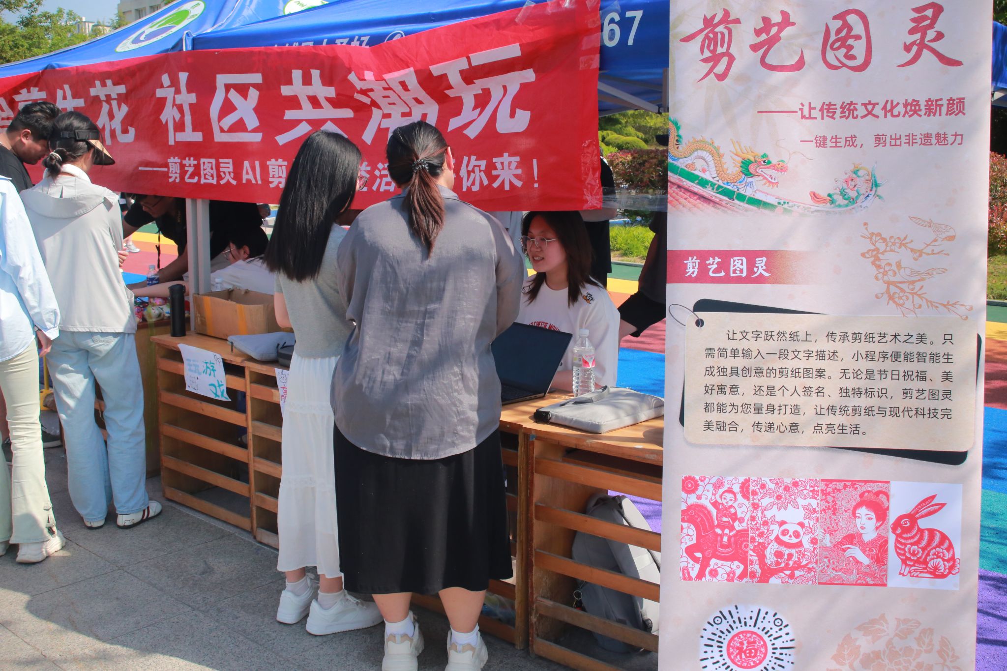 除了精彩的传统游戏,信息工程学院还带来了令人眼前一亮的项目——AI剪纸,将人工智能技术与传统剪纸艺术巧妙结合,成为了本次游园会的一大亮点。参与者只需在设备上输入想要的图案主题,AI系统便能迅速生成精美的剪纸设计图。无论是可爱的卡通形象,还是复杂的传统纹样,AI剪纸都能精准呈现,栩栩如生。现场同学们纷纷惊叹于科技与艺术的完美融合,赞叹道:“原来剪纸还能这么玩!既保留了传统剪纸的韵味,又融入了科技的创新,真是太有意思了!” AI剪纸项目不仅充分展现了学院的专业特色,更让同学们近距离感受到了科技赋能传统文化的独特魅力。