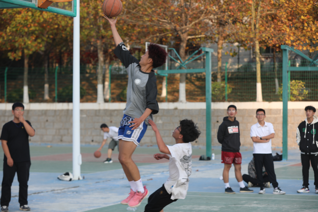 本次篮球赛共有5支队伍参与,按照抽签顺序进行激烈角逐。哨声响起,队员们以精彩非凡的表现演绎着奋斗的姿态,凝结着勤奋的汗水,展现出自信的风采;他们在阳光下奔跑,传球、运球、投篮一系列动作一气呵成。加油声中,只见健儿们纵身一跃,一帧精彩瞬间定格在记忆中。薄汗透衣衫,阳光映脸庞,云天收秋色,学子展风采,汗水与泪水交织共融,拼搏与喜悦同频共振。
