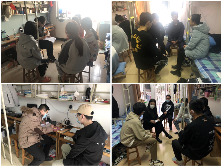 “停课不停学,停课不停教”,为了保证特殊时期教育教学工作的正常进行,也为了保证同学们的学习和生活质量,学院老师加强宿舍督导,深入宿舍对同学们的网课情况进行全面了解,收集同学们对线上教学情况的意见及建议。严肃课堂纪律的同时,提高线上教学质量;封闭管理期间,同学们的心里健康成为老师们的关注重点,班主任老师通过深入宿舍开展谈心谈话,对同学们的学习情况,生活情况,身体健康情况及心理健康情况进行了深入了解,叮嘱同学们在封校期间也要保持良好心态以及健康的生活习惯;利用这次老师深入宿舍督导走访的机会,同时开展“星级宿舍评比活动”,老师们将走访时遇到的优秀的宿舍在群中分享表扬,并持续进行跟踪和评比。