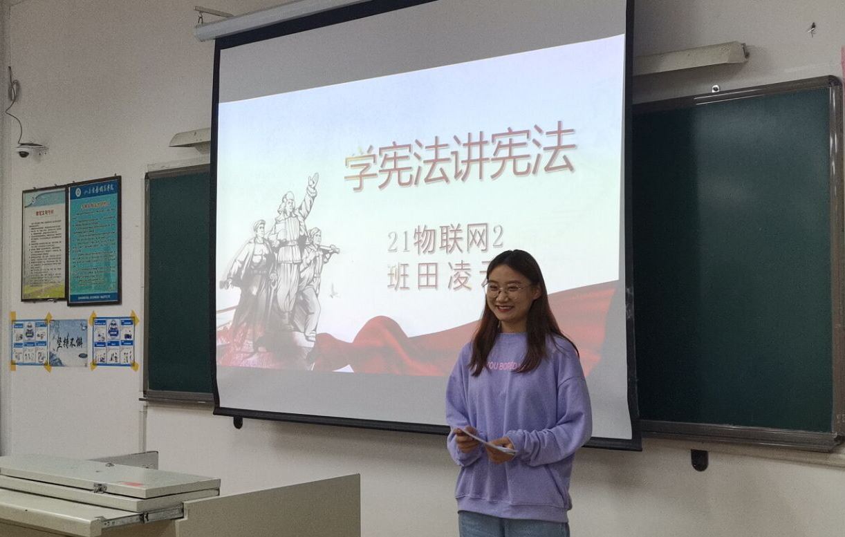 为深入学习贯彻党的十九大和习近平总书记系列重要讲话精神,全面落实《关于认真贯彻落实习近平总书记重要指示精神切实加强宪法学习宣传的通知》要求,提高信息工程学院的学子们了解宪法、学习宪法,弘扬宪法精神的意识,进一步增强法治观念, 10月15日,信息工程学院在二号教学楼204教室开展了主题为“学宪法讲宪法”的演讲比赛。