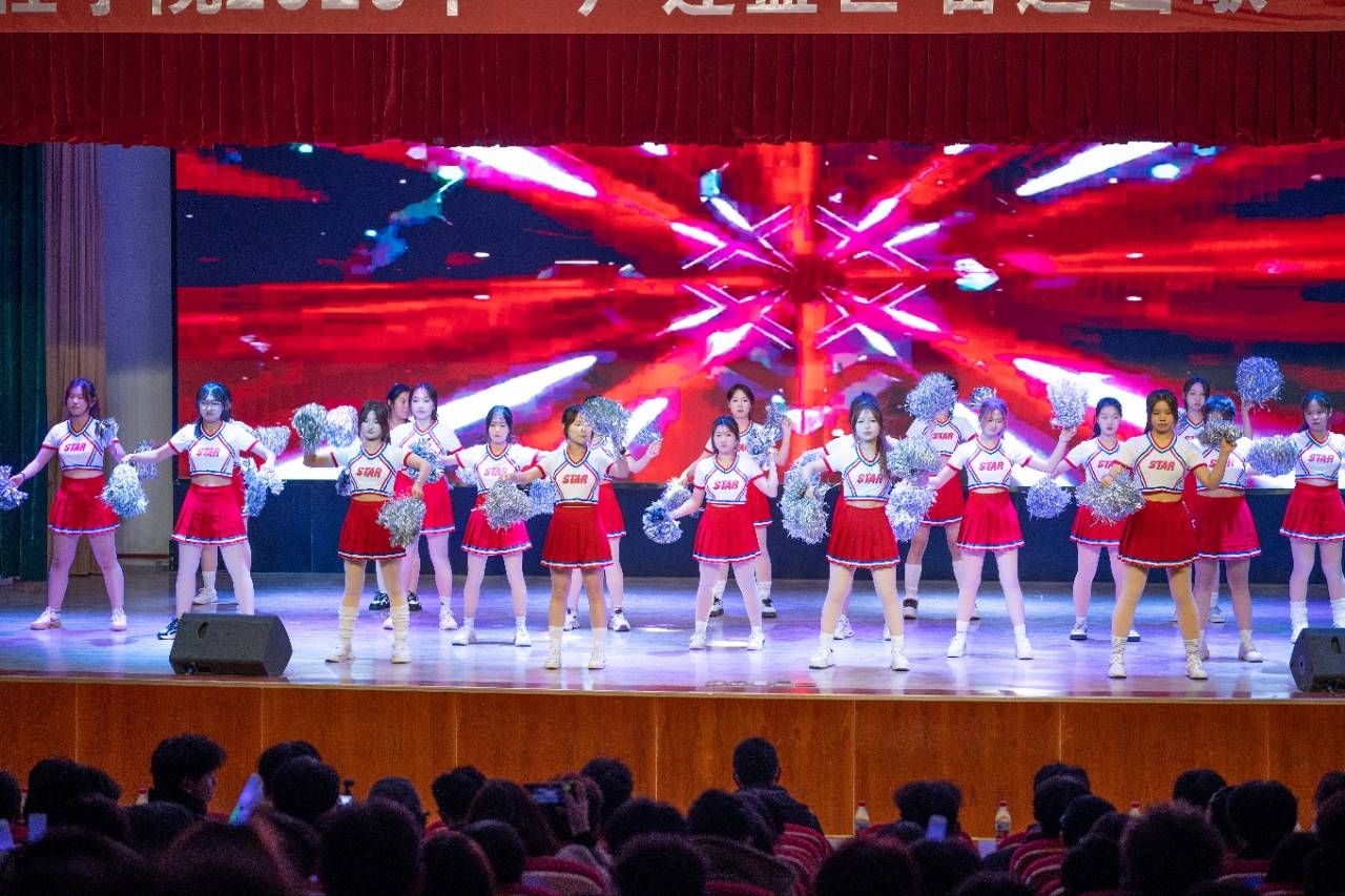 活动伊始,啦啦队身着靓丽队服登场,《爱的主打歌》动感旋律奏响,队员们凭借整齐有力的舞步、元气满满的风采瞬间点燃全场,台下师生掌声与欢呼声此起彼伏,为大赛拉开精彩序幕。随后,主持人稳步登台,清晰宣读了比赛评分标准、流程安排等规则,确保赛事在公平、公正、公开的氛围中有序开展。