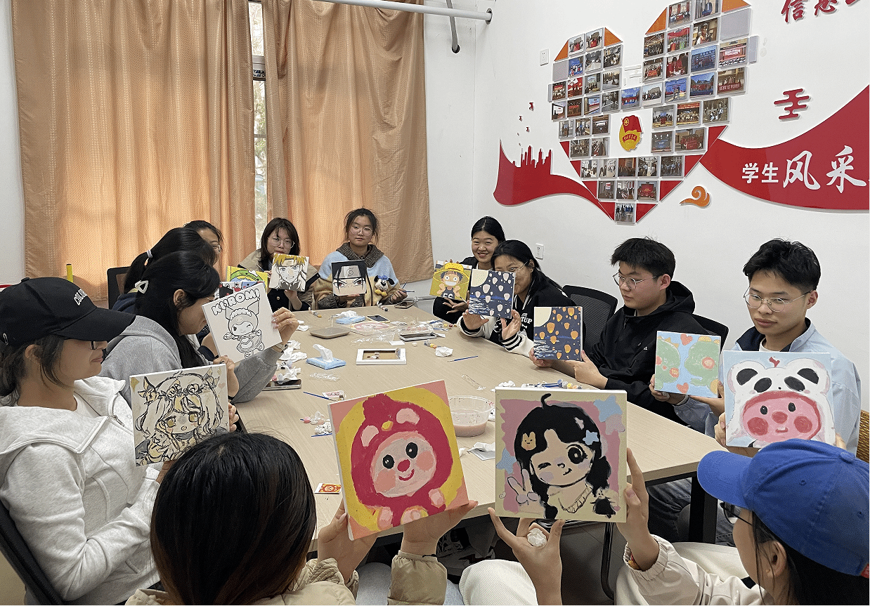 创作完成后,同学们纷纷展示作品、分享创作心得与心情感悟,在轻松交流中传递积极心态。工作人员结合创作体验,立足学院心理健康建设要求,向大家普及简单实用的心理舒缓技巧,引导同学们接纳自身情绪、用心感受生活美好。全体参与者的合影留念,定格温馨治愈的美好瞬间,也留存下社区心理活动的暖心回忆。