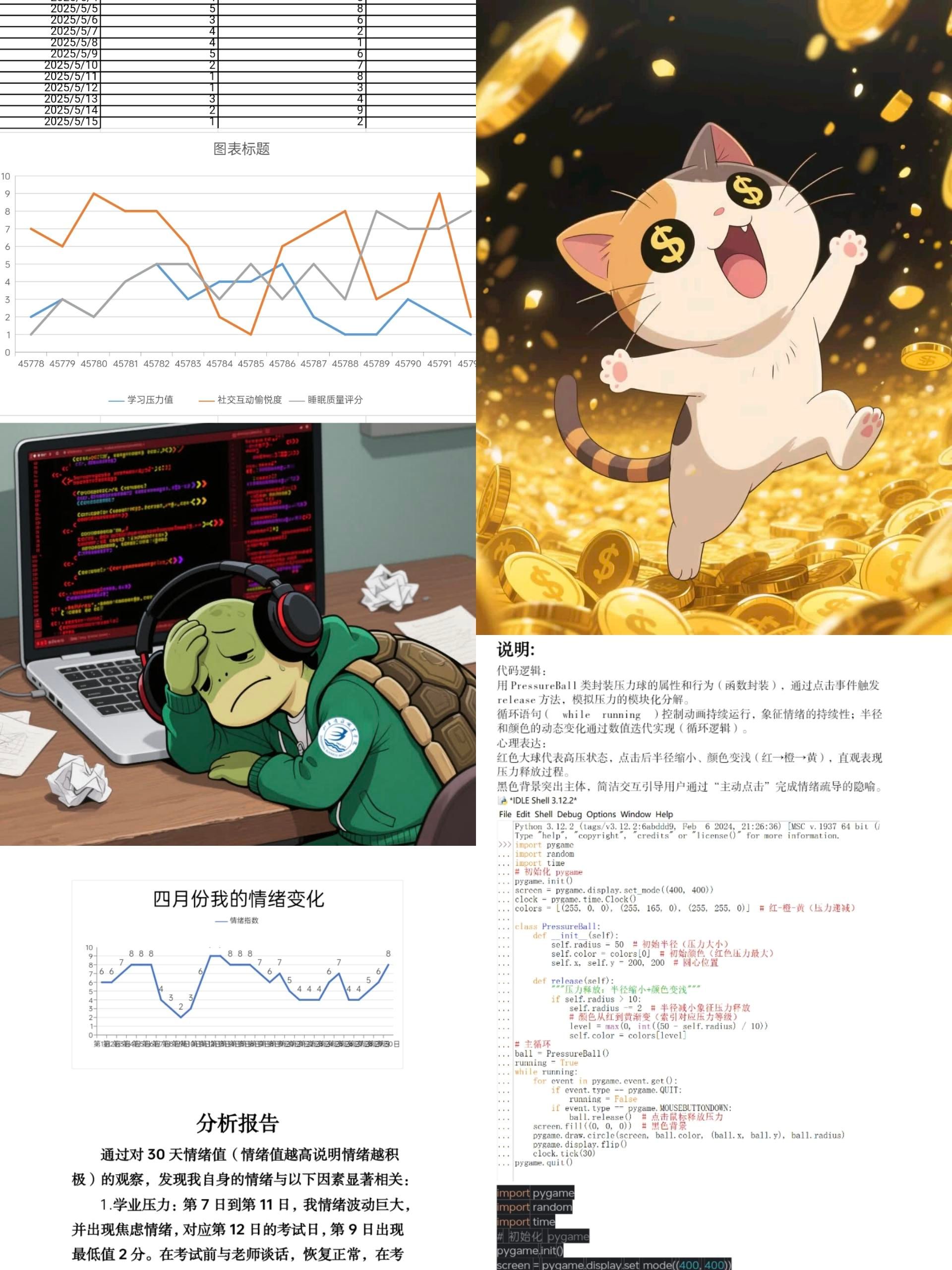 “代码心语・情绪可视化”编程创作赛。活动将心理健康与编程两大领域紧密结合,要求同学们在规定时间内以心理健康为主题完成程序设计,通过本次比赛,激发了同学们对心理健康问题的关注和思考,同时提高他们运用编程知识解决实际问题的能力。