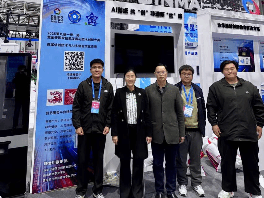 10月23日,我校信息工程学院师生抵达青岛全国教育装备展现场布展,开展“剪艺图灵”生成式剪纸平台的推广与一带一路金砖暨金砖国家技能发展与技术创新大赛——首届信创技术与AI多语言文化交流大赛的宣传工作。此次展示为期三天,旨在推动传统剪纸艺术与现代数字技术的融合成果在教育领域推广应用。