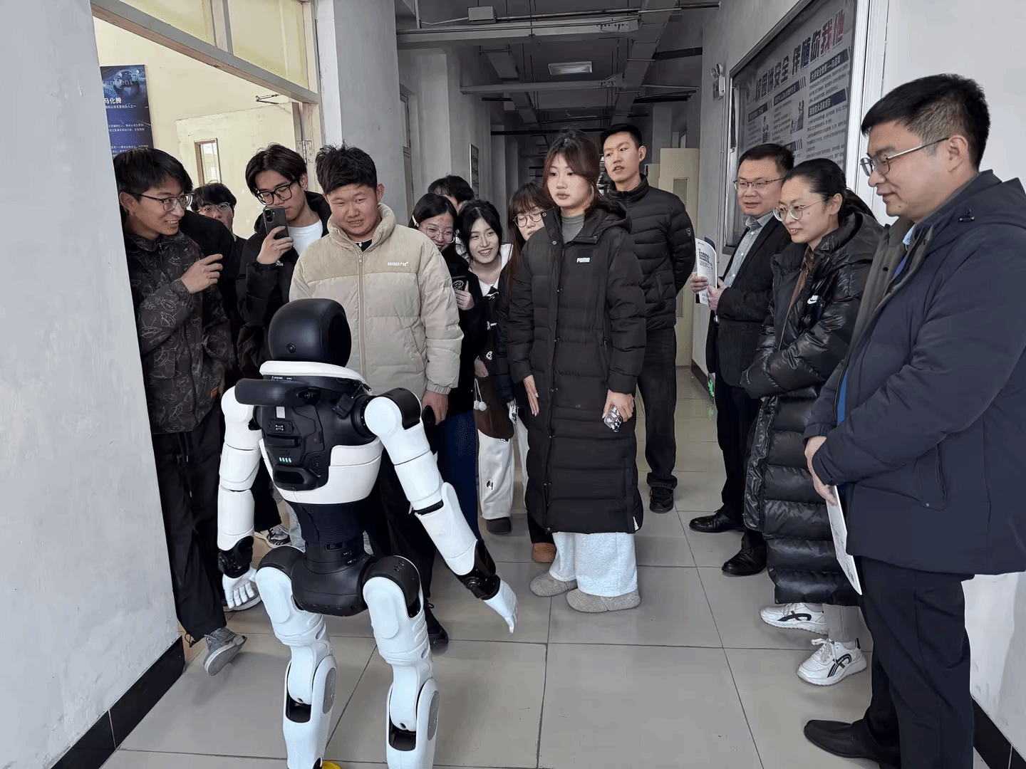 魏昌介绍了智元机器人在具身智能领域的技术积淀与产业布局。作为AI+机器人融合创新企业,公司自主研发了具身智能基座大模型,构建了“一脑多形”的技术体系,在教育、工业等场景形成成熟应用方案。他表示,公司深耕产教融合,已与多所高校共建实验室、开发特色课程,希望依托智元的技术底座与开源生态,与学院探索人才共育新模式。企业工程师为学院师生现场展示了智元灵犀X2型人形机器人,引起了师生们的浓厚兴趣。双方围绕核心议题深入研讨,针对粮食仓储智能化升级、人工智能通识教育创新,具身智能技术赋能教学竞赛、教学改革等具体内容达成多项共识。各专业负责人围绕未来具身智能热点以及合作方向进行了深入沟通与研讨。