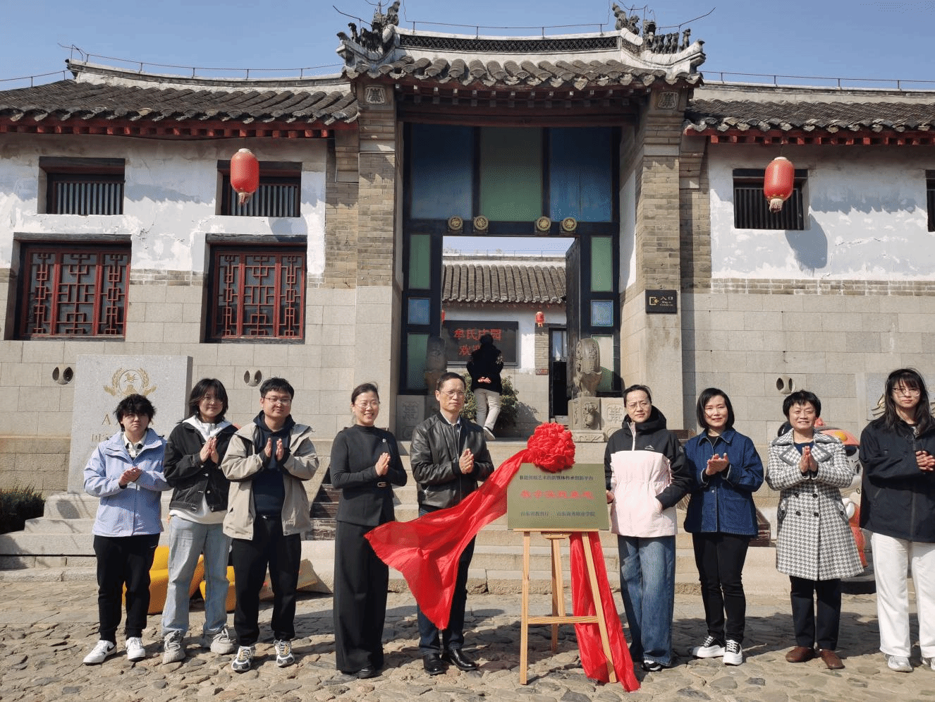 4月1日,我校非遗研学基地、非遗剪纸艺术的新媒体传承创新平台教学实践基地揭牌仪式在烟台牟氏庄园举行。国家级非物质文化遗产项目——烟台剪纸省级代表性传承人、共和国杰出剪纸艺术名家、全国剪纸优秀指导教师、中国民间文艺家协会会员、齐鲁文化之星衣培娟女士,市牟氏庄园管理服务中心、市文化馆相关负责人,我校信息工程学院党政负责人出席揭牌仪式。