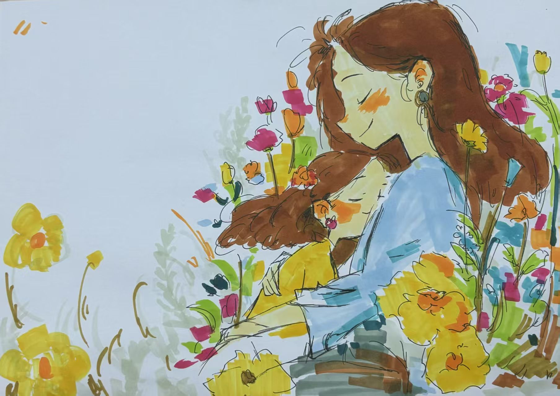 绘爱成诗·感恩母亲:以丹青笔触诉说深情。在绘画创作板块,学子们以多元艺术语言诠释母爱主题。水彩画《厨房的温度》用氤氲热气勾勒母亲背影,抽象油画《时光调色盘》则以渐变色彩隐喻母亲从少女到母亲的人生蜕变。更有学子创新性采用数字绘画形式,制作动态电子贺卡,让静态画作中的蒲公英种子随点击飘散,化作“妈妈我爱你”的动态字样。“这次创作让我重新观察母亲的手——那双为我熬过无数深夜的粗糙手掌,在画布上成为最动人的细节。”参与绘画的同学回忆道。