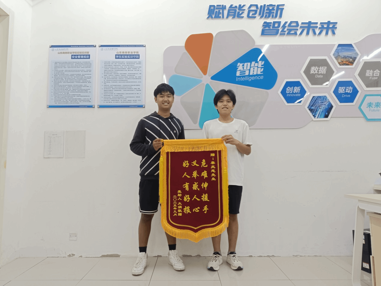 9月16日,一面写有“危难伸援手 义举感人心 好人有好报”的锦旗送至我校,揭开了两位学子在今年暑假见义勇为、冷静施救的感人故事。信息工程学院2024级人工智能1班学生秦兆志、张弘烨,在街头面对突发危急情况沉着应对、高效协作,成功救助一名因高烧休克昏迷的儿童,以实际行动诠释了我校“商务学子”核心品质。