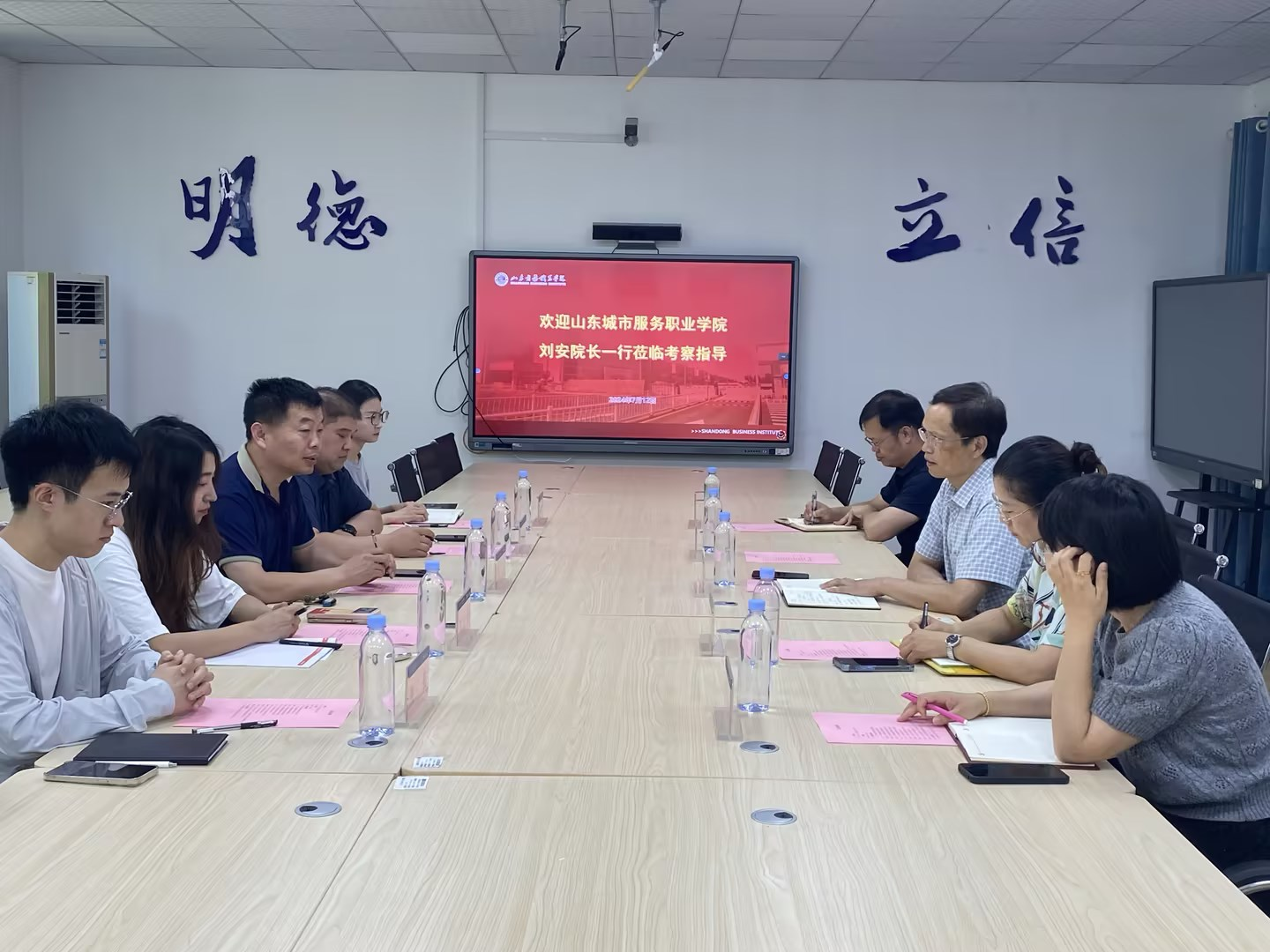 7月12日,山东城市服务职业学院智能制造学院院长刘安一行5人来访我校信息工程学院,信息工程学院党总支书记王九福、院长高晓燕以及相关教研室主任参加了座谈交流并陪同参观考察。