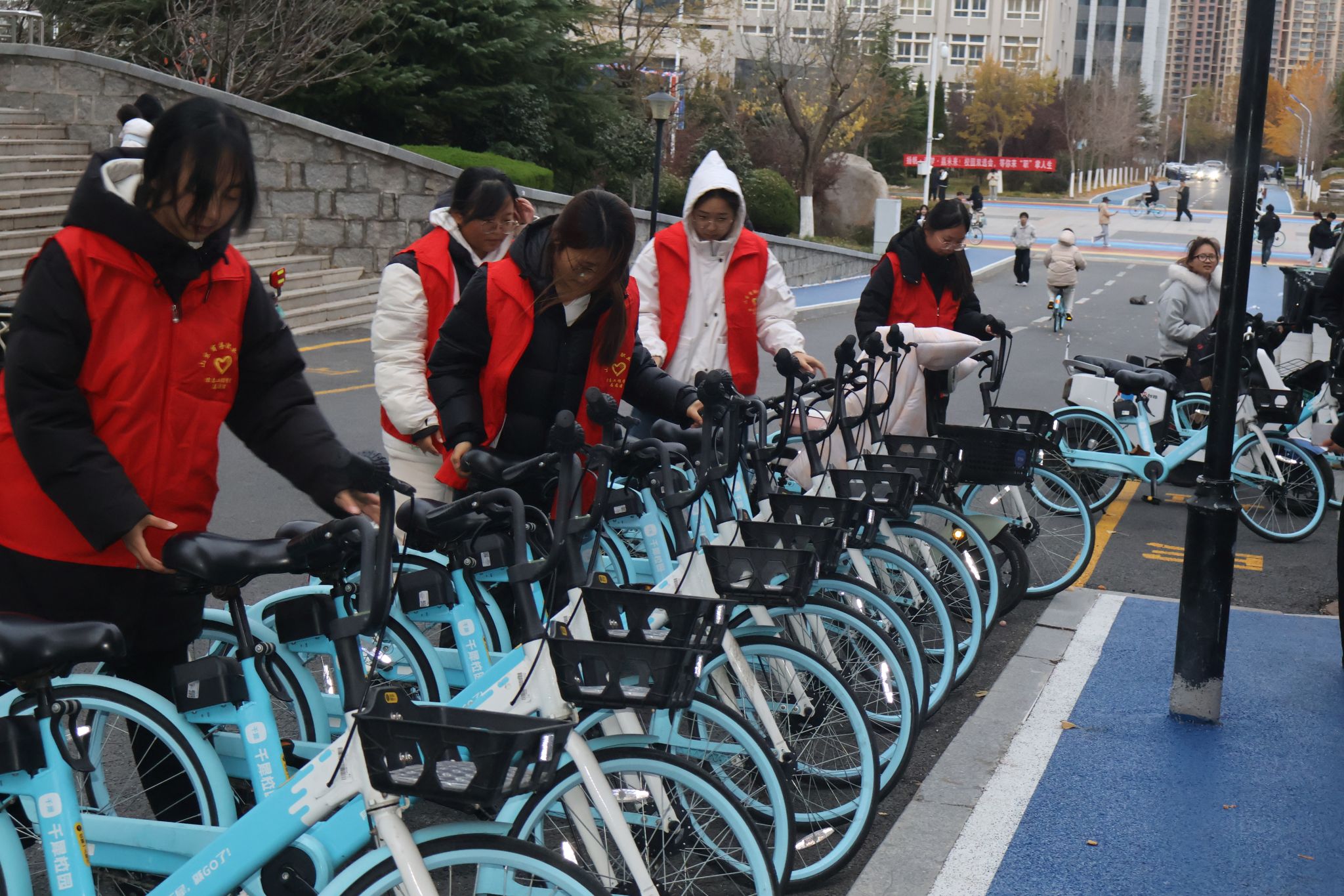 美化校园齐发力,共建有序好环境。校园内同步推进大环境整治志愿服务,志愿者分工协作,活跃在教学楼、公共区域及公寓楼下,细致清扫地面、擦拭公共设施,规整乱停放的自行车与电动车,用汗水营造整洁有序的学习生活环境,以实际行动践行共建美丽校园的青春承诺。