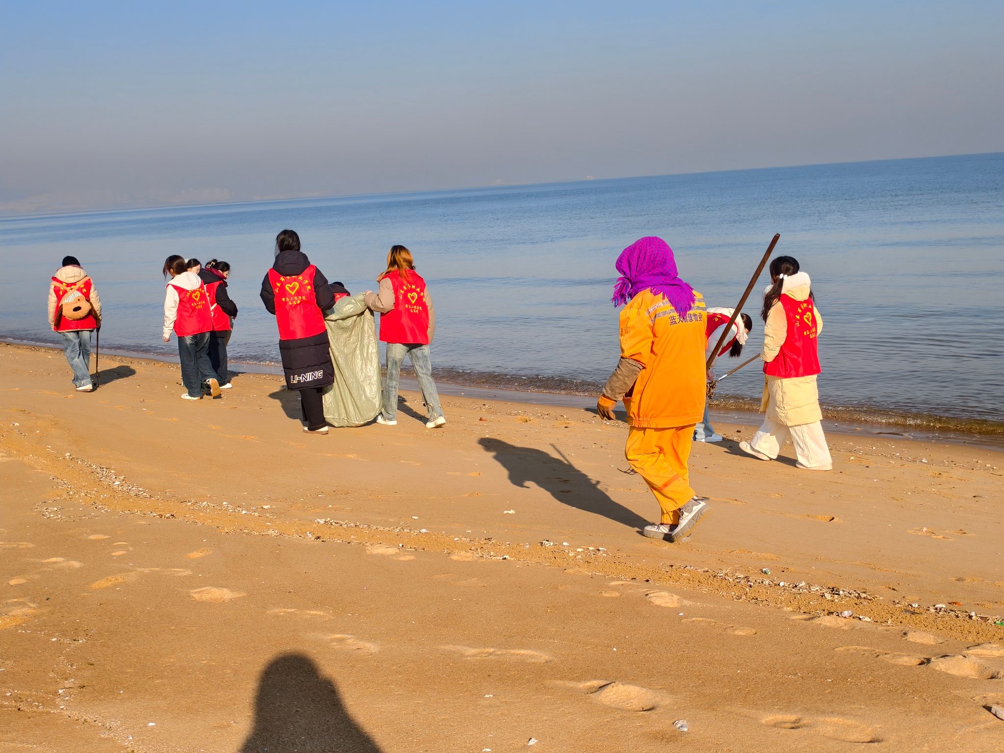 净滩护海践初心,感恩同行守生态。高新区海滩上,受助学生志愿者与清洁员并肩开展“净滩护海”行动,手持工具沿海岸线细致清理塑料瓶、包装袋等海洋垃圾,经数小时劳作,沙滩与礁石区域重现洁净。活动既美化了海岸环境,更让学生体会基层劳动者辛劳,坚定感恩社会、守护环境的责任信念。