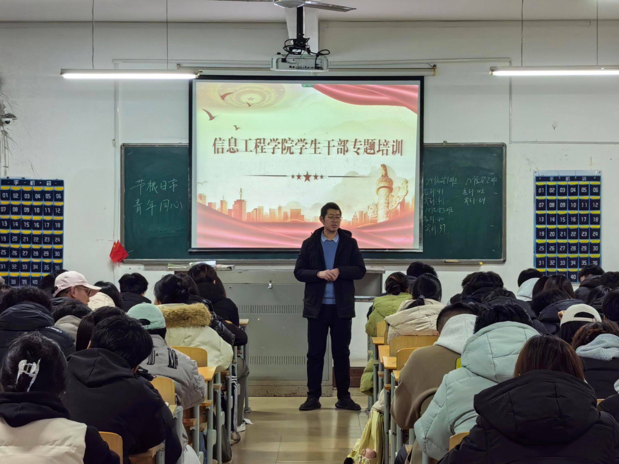 为加强学生干部队伍建设,提升学生骨干的综合素养与责任意识,12月9日下午,信息工程学院开展学生干部专题培训。学院学生科科长巩斌担任主讲,2024、2025级全体学生干部参加培训。