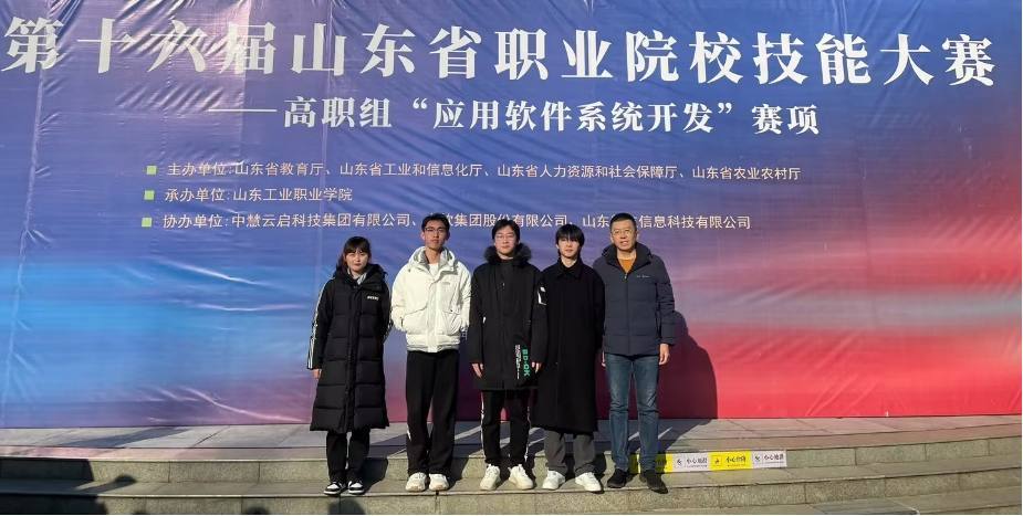 12月16日-17日,第十六届山东省职业院校技能大赛高职组“应用软件系统开发”赛项在淄博举办,来自全省44所高职院校的132名选手同场竞技。我校信息工程学院顾海燕、李素素两位老师指导的蔡克诚、董光源、王立平3位同学,在比赛中展现出扎实的专业知识和出色的团队合作能力,经过6个小时的激烈角逐,最终荣获团体二等奖。