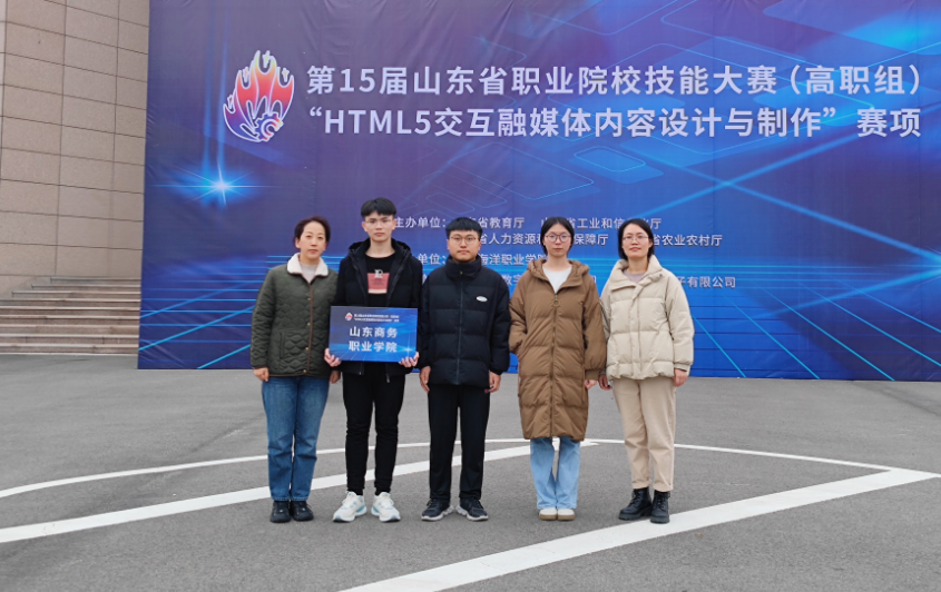 11月21日,山东省职业院校技能大赛(高职组)“HTML5交互融媒体内容设计与制作”赛项在威海海洋职业学院举行。我校信息工程学院计算机应用技术专业赵梓茗、乔佳乐、李柏乐三名学生组成的参赛团队,在刘立静、曲心慧两位老师的指导下,荣获省赛一等奖第二名的好成绩。