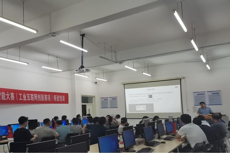 张云生在致辞中对主办方和参训学员表示欢迎,并介绍了学校和信息工程学院的基本情况和办学特色。张云生指出,当前以数字化、网络化、智能化为本质特征的第四次工业革命正在兴起,工业互联网作为新一代信息技术与制造业深度融合的产物,是数字化转型的实现途径,是实现新旧动能转换的关键力量。高等院校作为人才的供给方,也应该面向产业需求提升人才培养质量,在这一轮变革的大潮中发挥自身作用。本次培训班是一次非常好的产教融合、以赛促学的契机。希望借此次师资培训的机会,与来自教育界、产业界的同仁进行交流、探讨,共同为工业互联网人才的培养贡献绵薄之力。