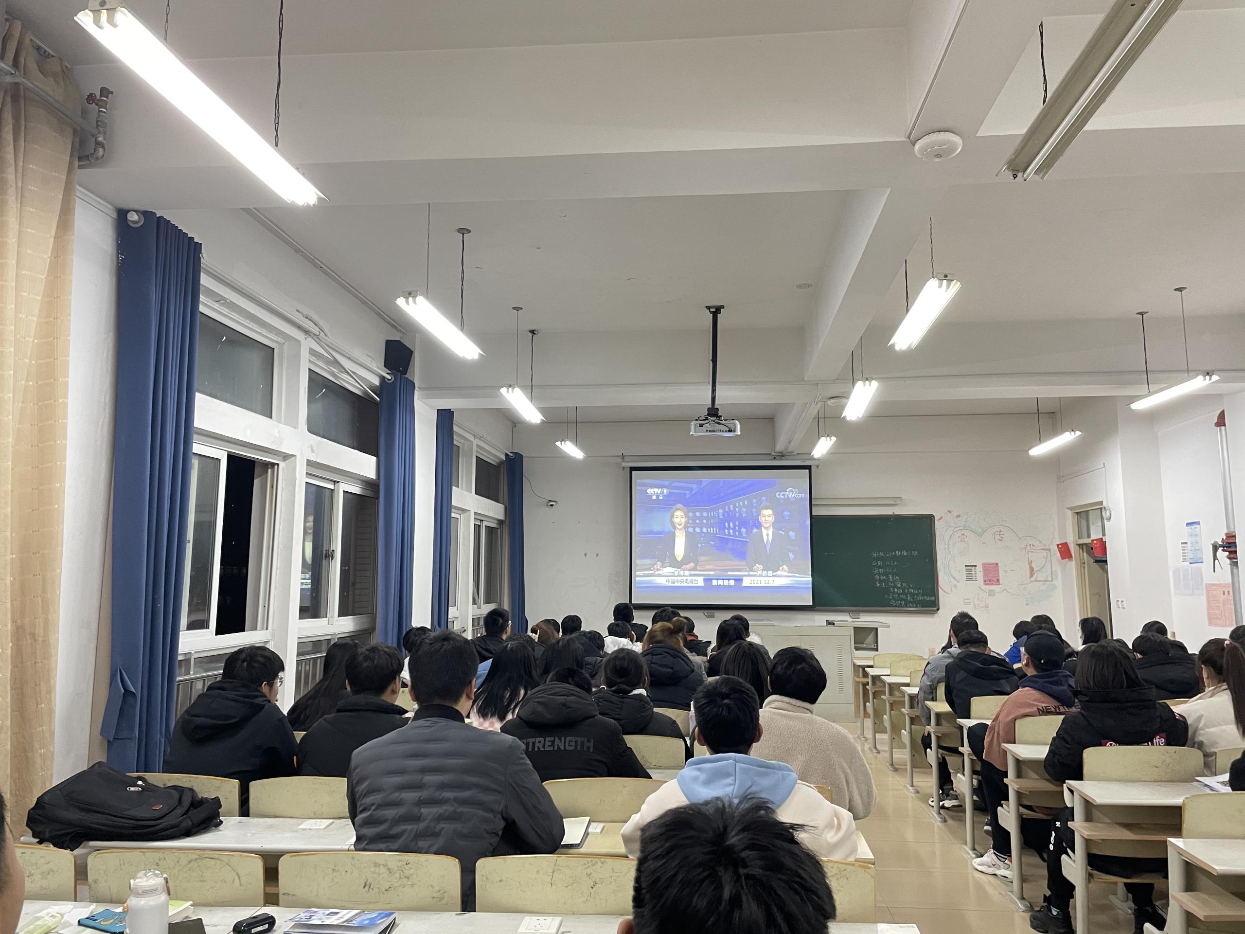 为促进新时代的大学生进一步关心国家大事,关注民生热点,关注国际时事,信息工程学院组织学生们每天晚上七点钟在教室认真收看中央电视台的新闻联播栏目。