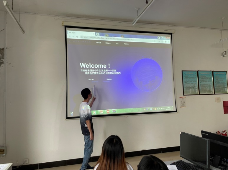 本次比赛同学们踊跃报名,6月15日下午,计算机应用技术专业教研室组织参赛学生对作品进行展示和讲解,教研室5名专任教师现场指导和点评。同学们的作品内容丰富多彩,其中王漱瑜同学一举拿下一等奖、最佳创意奖和技术创新奖。